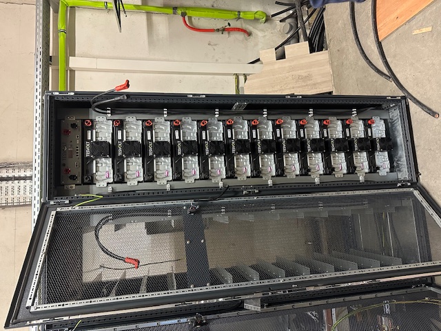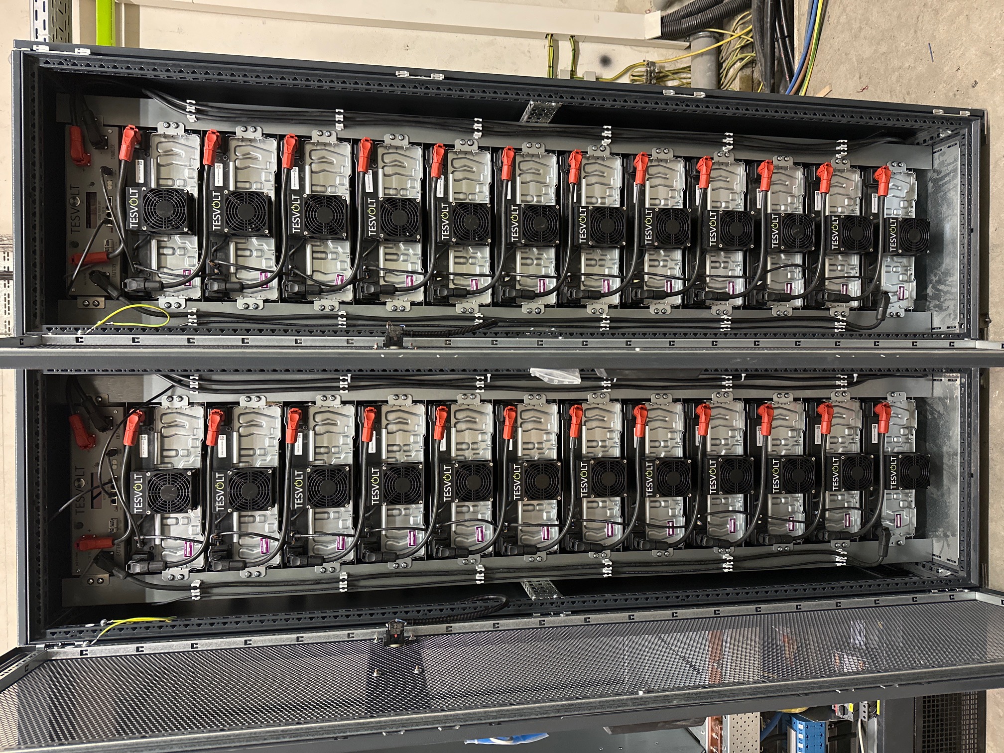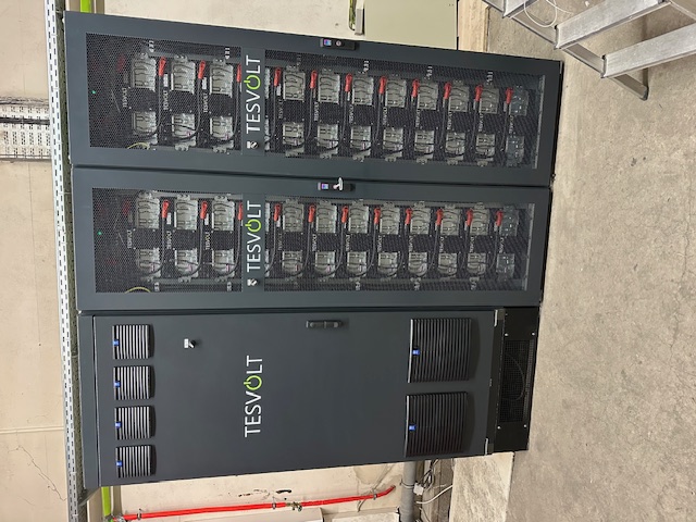 Wichtig war hierbei, dass die Anlage möglichst viel Strom speichern und gleichzeitig ausgeben kann, dabei kam die Firma Tesvolt aus Wittenberg ins Spiel, da ihre Anlage bis zu 100kW laden und entladen kann, wobei herkömmliche Batteriespeicher im Schnitt bei 2,5-10kW liegen